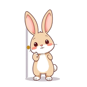 Inspire your space with this funny digital art print. The rabbit pointing to a door is a symbol of exciting possibilities.